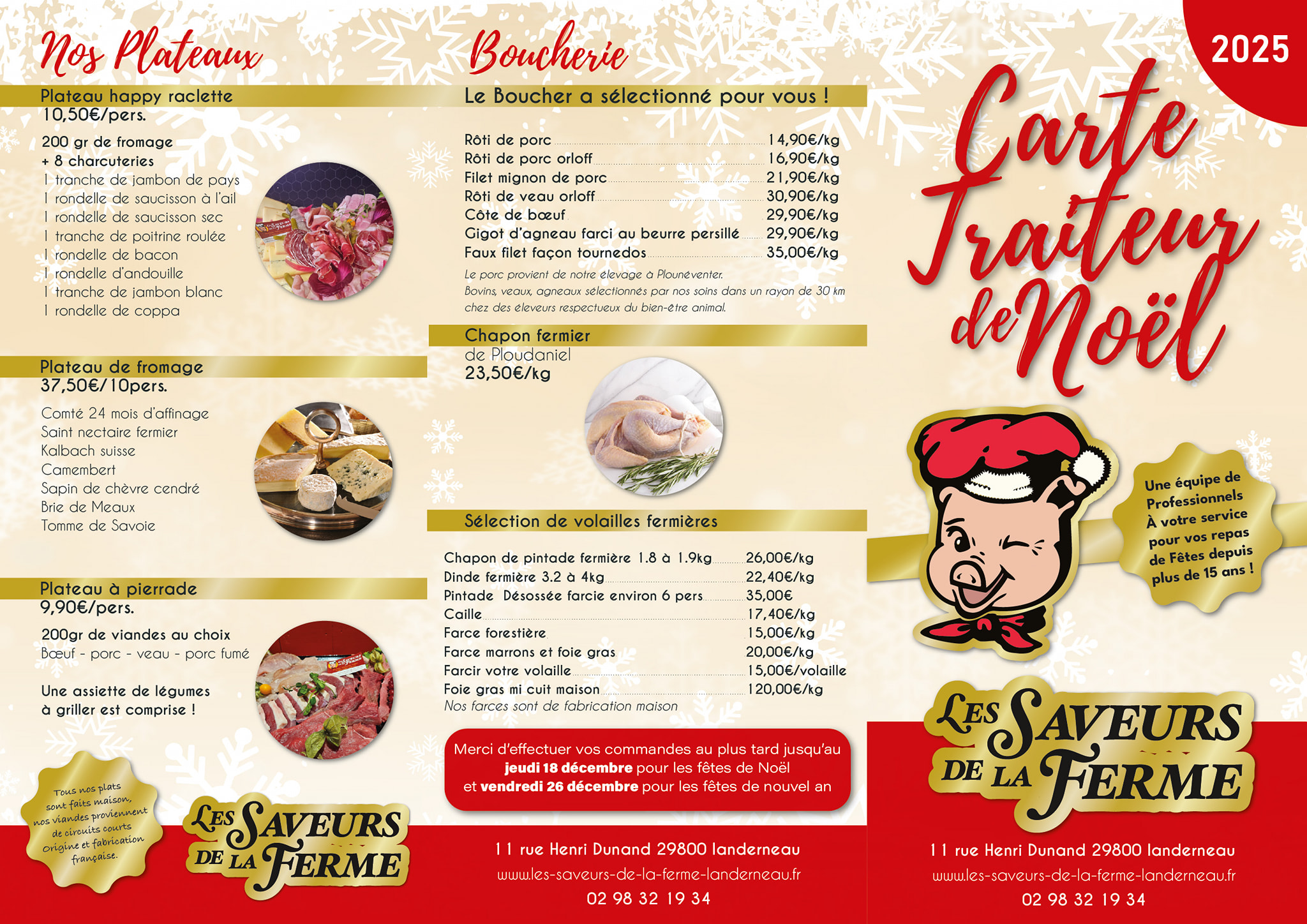 Merci de faire vos commandes au plus tard le jeudi 18 décembre pour le réveillon de noël.